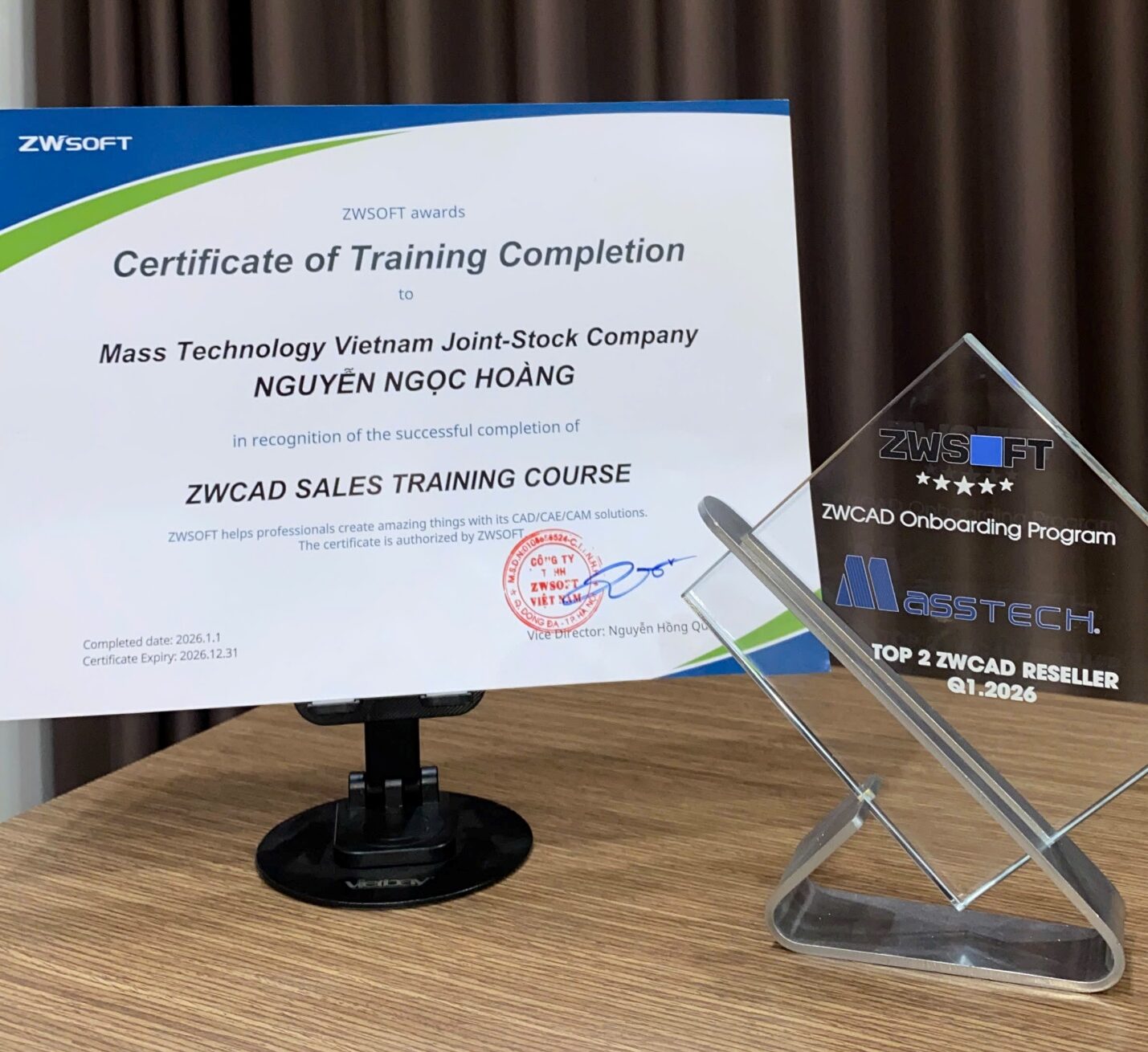 Trong Quý 1/2026, Masstech vinh dự đạt Top 2 Reseller – Đại lý có doanh số cao nhất tại Việt Nam của ZWSOFT, ghi dấu một cột mốc quan trọng trong hành trình hợp tác và phát triển cùng hãng Zwsoft.
